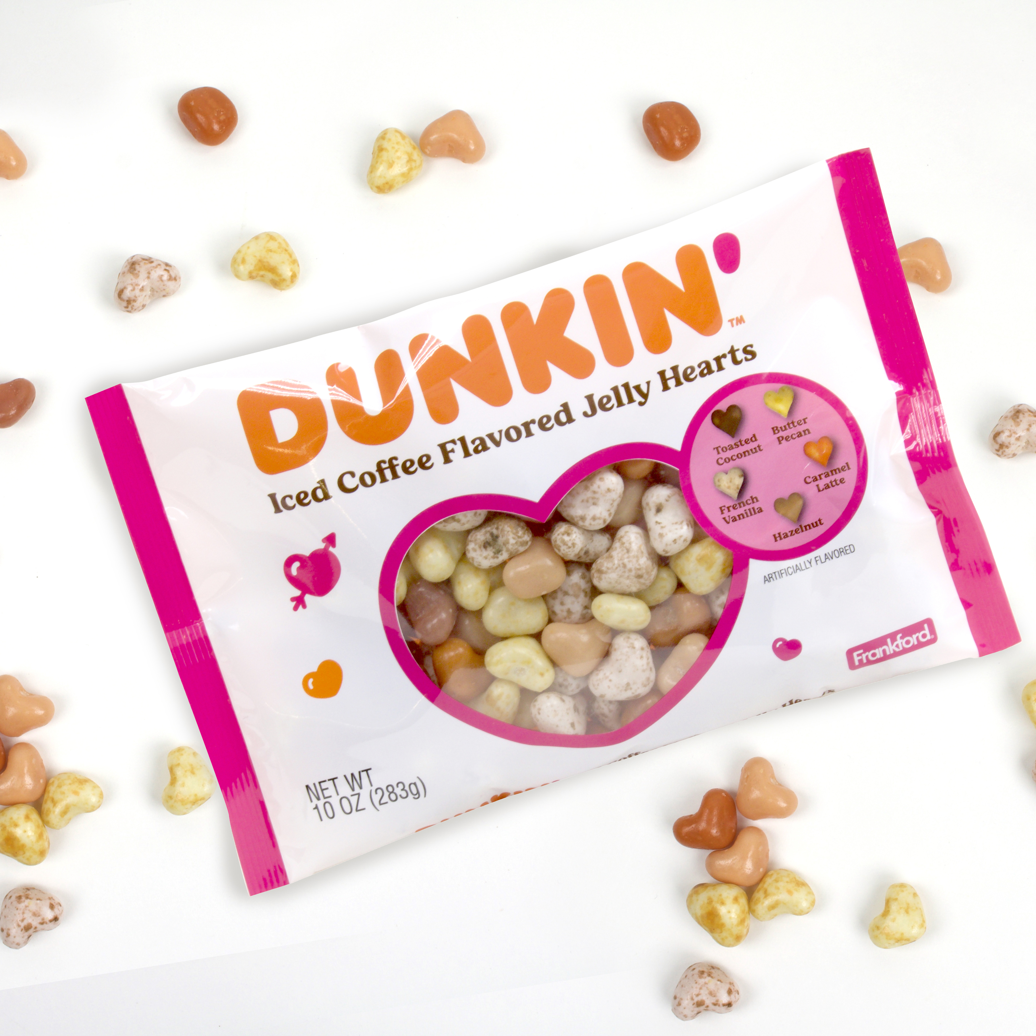 - Dunkin’ Iced Coffee Flavored Jelly Hearts: Fans can also add a fun twist to the gift of iced coffee this Valentine’s! These jelly hearts capture the delicious flavors of Dunkin’s popular iced coffee, including Hazelnut, French Vanilla, Caramel Latte, Toasted Coconut and Butter Pecan.